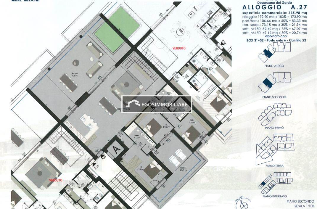 L'esclusivo attico in vendita nel comune di Desenzano del Garda, provincia di Brescia, rappresenta una vera e propria occasione unica sul mercato immobiliare. Situato in una nuova costruzione, l'attico offre una spettacolare vista lago di Garda e dispone di una ampia terrazza ideale per godere di momenti di relax all'aria aperta. Zona giorno con salone ed angolo cottura di mq 80.Con un prezzo di 1.768.000 euro, l'immobile vanta anche un solarium privato e un ampio garage e cantina al piano interrato, garantendo praticità e comfort ai suoi futuri proprietari. Con una superficie commerciale di 336 mq e una distribuzione di 6 vani, la classe energetica A4 conferma l'efficienza e la modernità dell'attico, che si presenta come un'opportunità imperdibile per chi desidera vivere in uno spazio esclusivo e di prestigio.